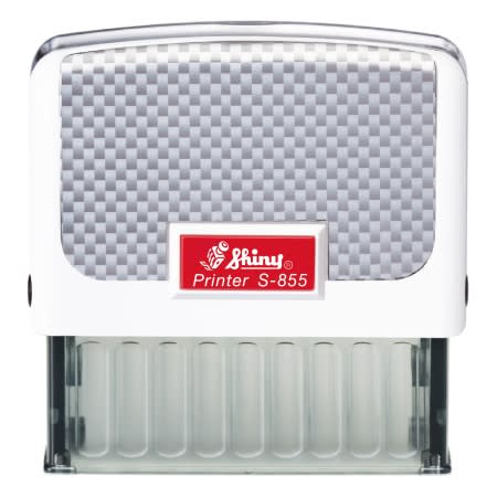Tampon encreur entreprise automatique plastique avec 6 lignes de texte personnalisé – centré à gauche